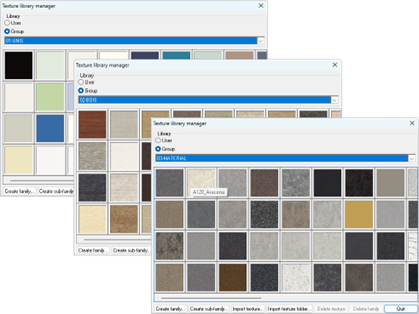 Cette base intègre un large éventail de textures organisées en trois grandes catégories. Chaque matériau est renseigné avec des données essentielles pour vos conceptions :