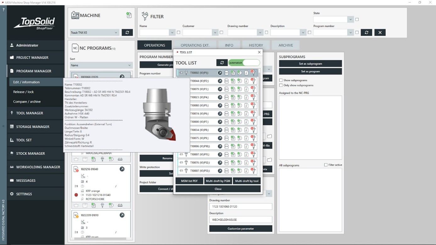 L’outil a été choisi pour sa compatibilité native avec TopSolid'Cam, sa capacité à centraliser les programmes et les fichiers ISO, à gérer les droits d’accès par machine et à tracer les actions de chaque utilisateur.
