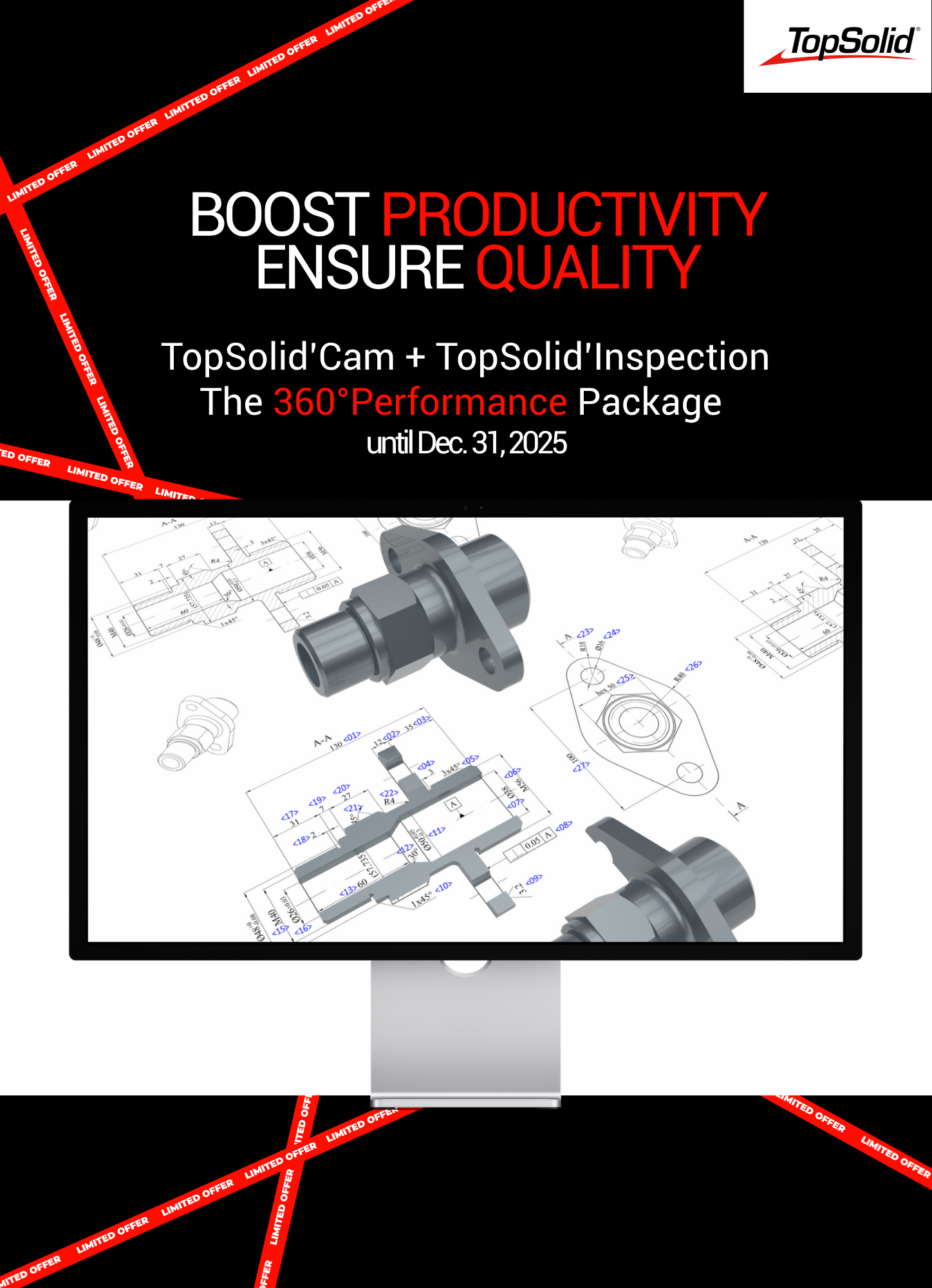 Boost your performance with the 360° Package! Until December 31, 2025, with every purchase of a full TopSolid’Cam license, you’ll receive a TopSolid’Inspection license free of charge.