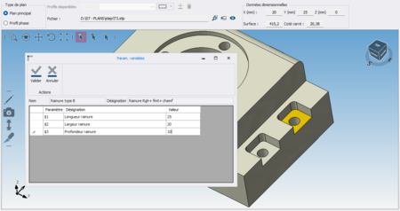 L’extension Pro donne accès à la fonctionnalité Macro, qui permet de construire des modèles de cycles d'usinage pré-paramétrés. Ces véritables gabarits constituent une base robuste, réutilisable et parfaitement adaptée à vos méthodes de production. Désormais, accédez directement au plan de la pièce pour extraire automatiquement les données dimensionnelles : les saisies manuelles disparaissent, tout comme les risques d’erreur.