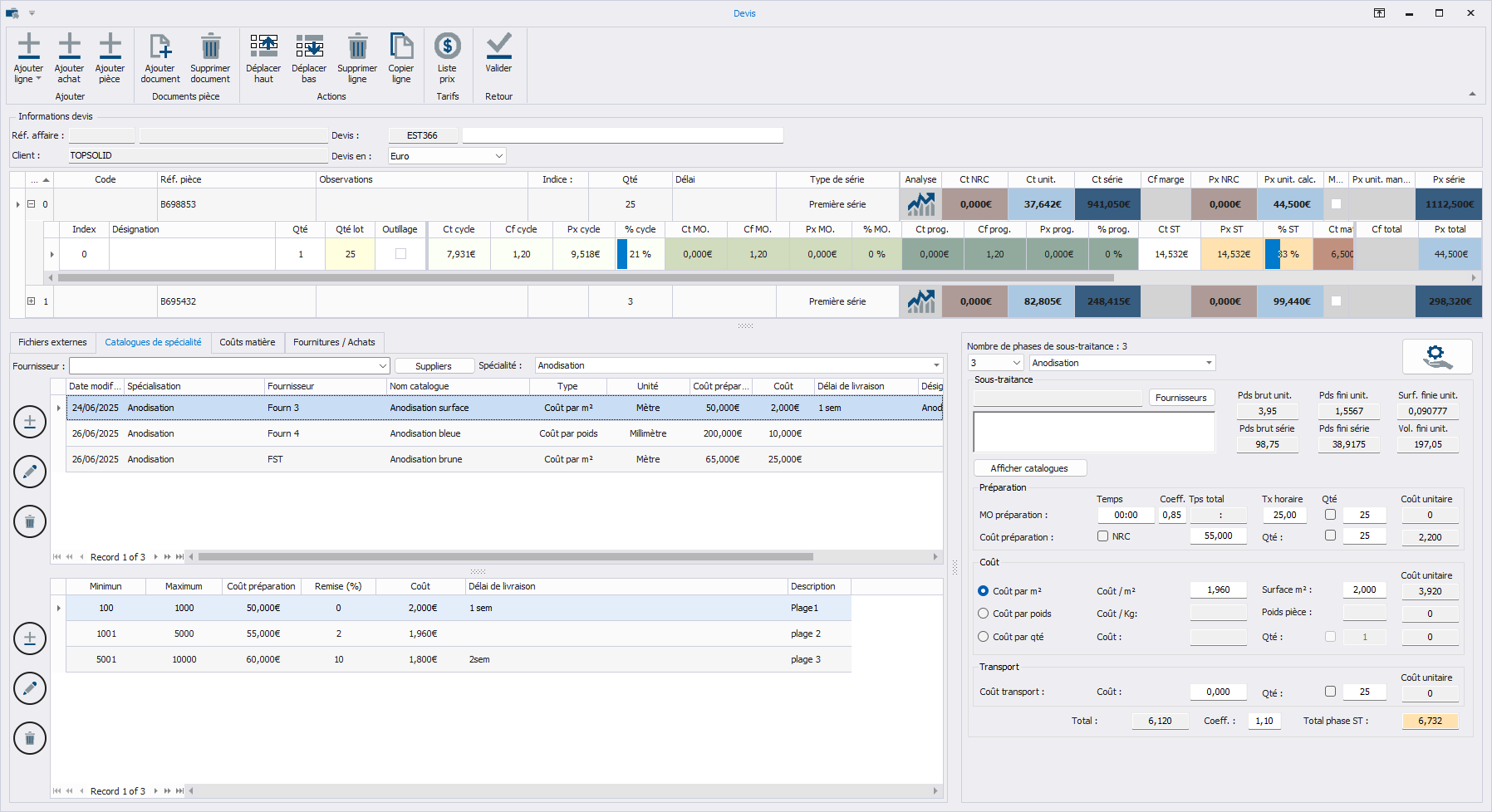 - Référentiel centralisé : Accédez instantanément à l’ensemble de vos tarifs de sous-traitance et de fournitures pour un chiffrage fluide, sans rupture d’information.