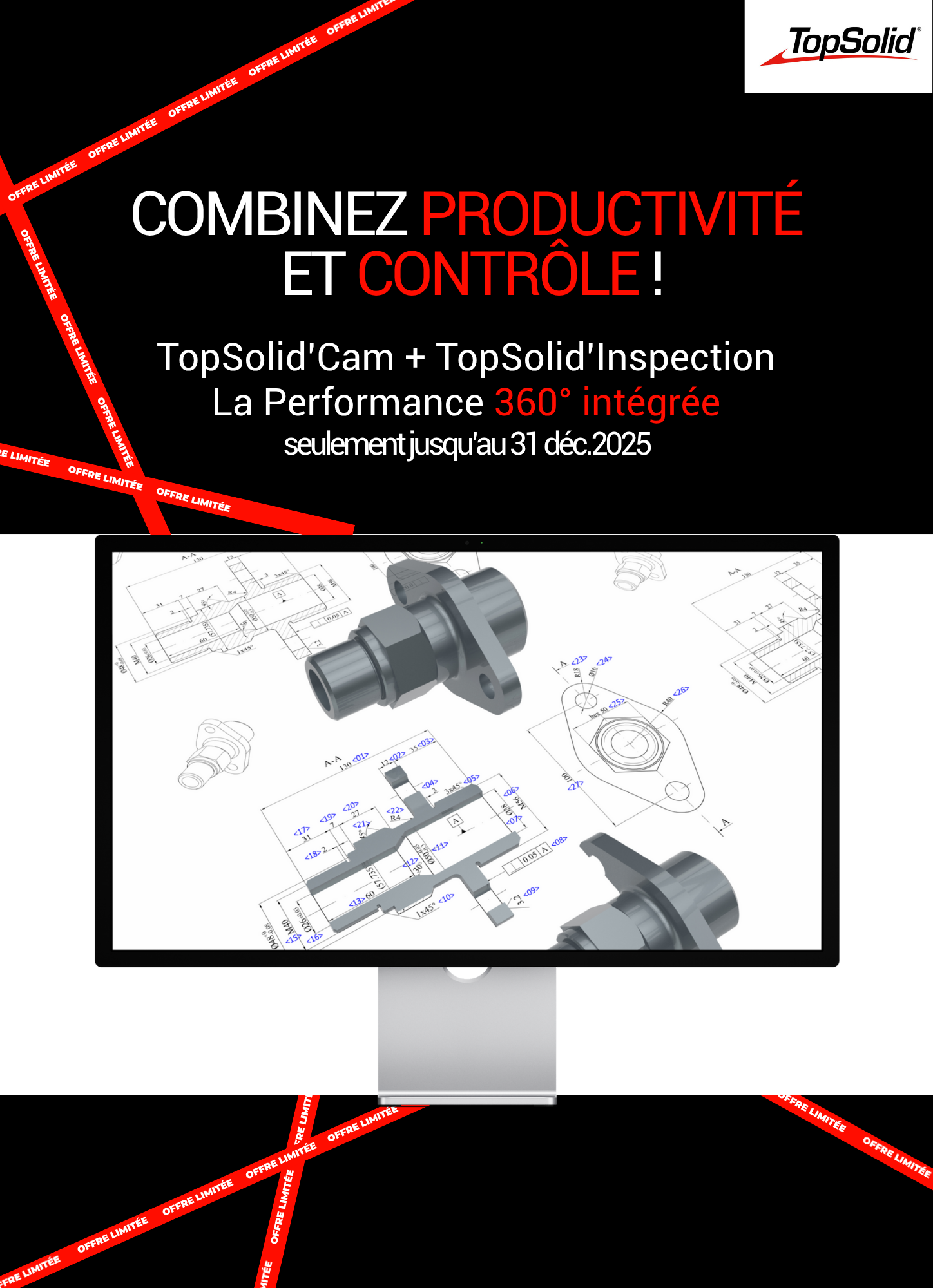Boostez vos performances avec le pack 360° ! Jusqu'au 31 décembre 2025, pour tout achat d'une licence complète TopSolid'Cam, vous recevrez gratuitement une licence TopSolid'Inspection.