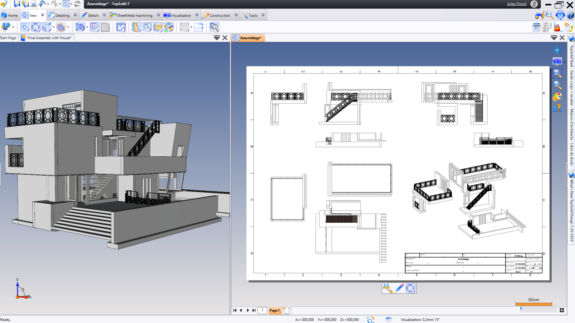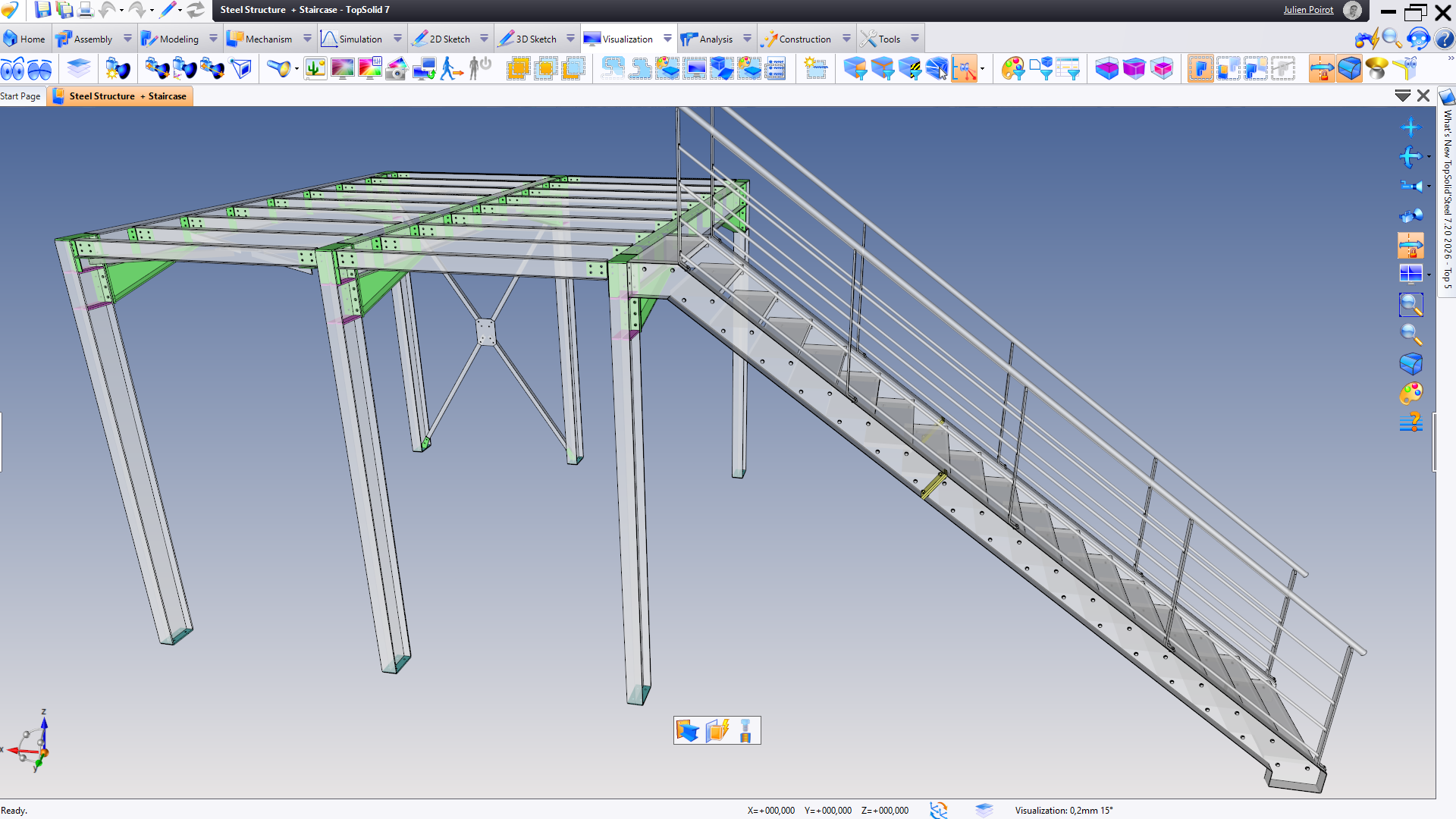 - Productivité accrue : Accélérez la modélisation de structures métalliques complexes (escaliers, garde-corps, ossatures) grâce à des automatisations intelligentes.
